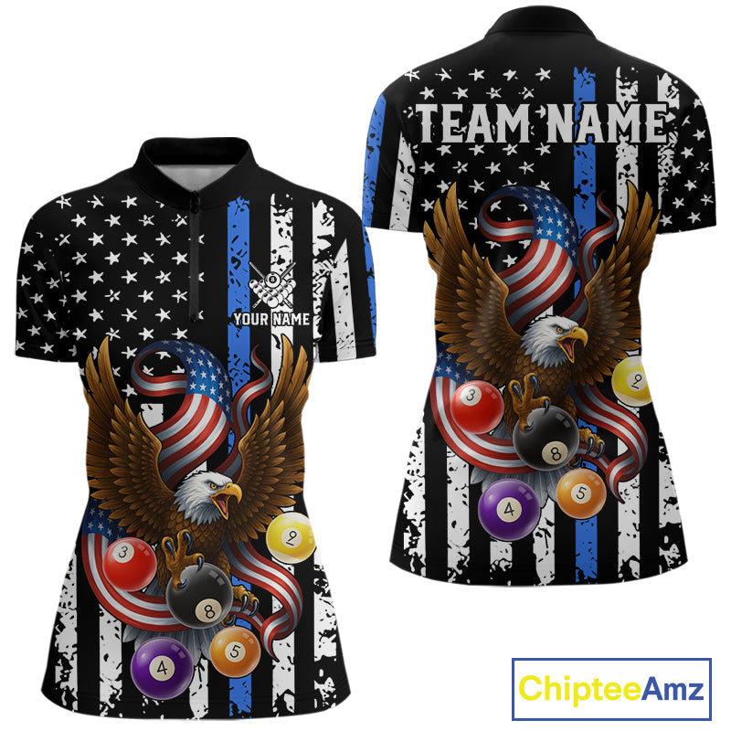 Billiard Eagle American Flag Stripes Pool Jersey For Women Custom Patriotic Billiard Team Shirt|Blue TDM4982