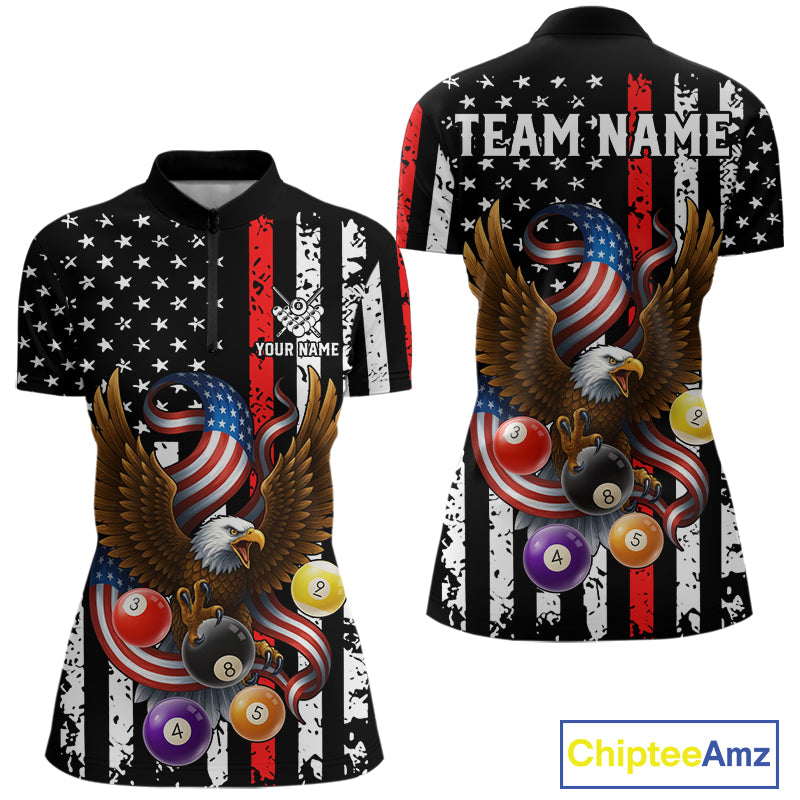 Billiard Eagle American Flag Stripes Pool Jersey For Women Custom Patriotic Billiard Team Shirt|Red TDM4983