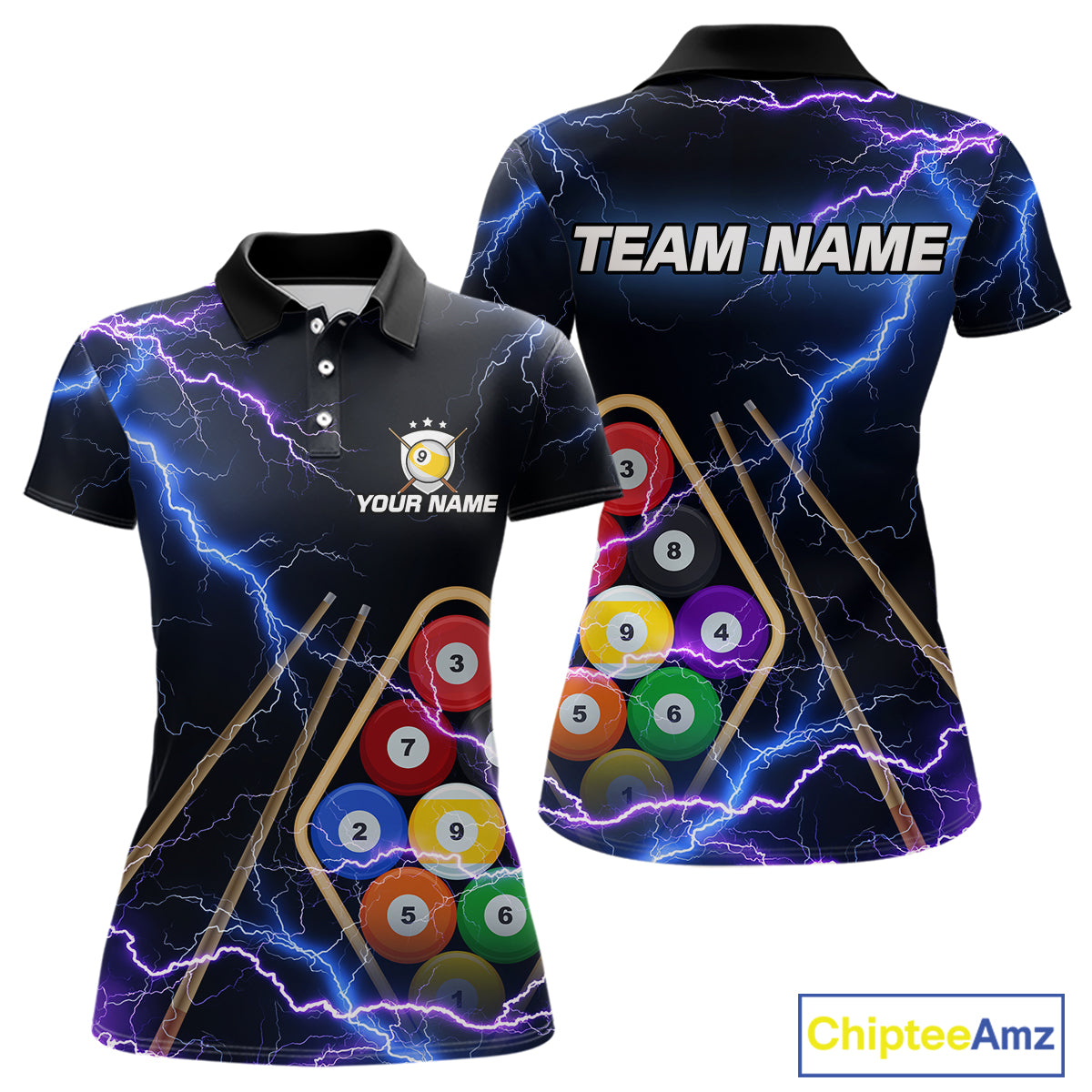 Purple Thunder Lightning 9 Ball Billiard Shirt For Women Custom 9 Ball Team Shirt, Billiards Jerseys TDM5135