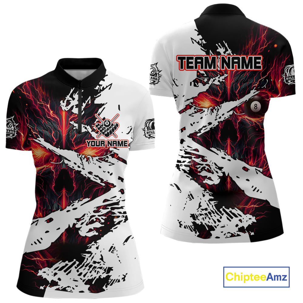 Personalized Lightning Skull Billiard Shirts For Women Custom Billiard Jerseys Grunge Style |Red TDM5219