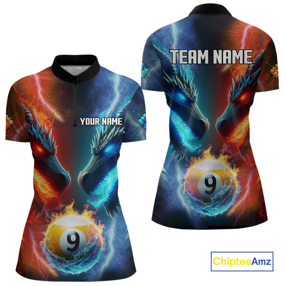Blue And Orange Custom Dragon 9 Ball Pool Billiard Shirt For Women, Billiard Jersey Polo & 1/4 Zip TDM5232