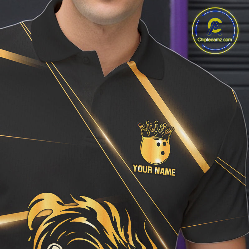 Black and Gold Flame Dragon Bowling Polo, Quarter Zip Shirt for Men Custom Bowling Team League Jersey NQS10904