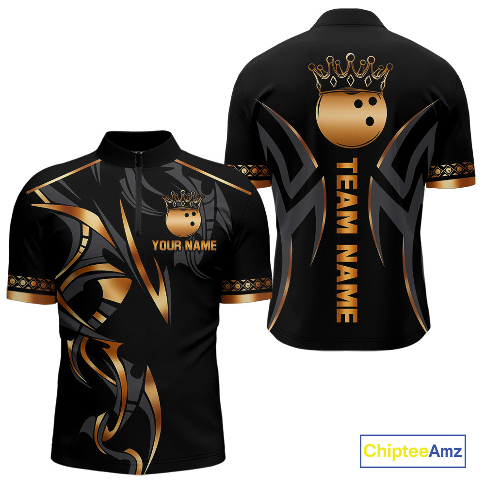 Black and Orange crown Bowling ball Polo, Quarter Zip Shirts for Men Custom Bowling Team jerseys NQS10538