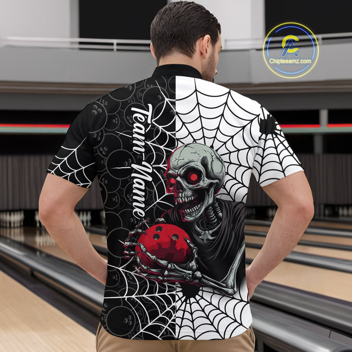Black and White Skull Bowling Team Shirt Custom Spider Bowling Jersey Men Halloween Bowling Outfit QZT748