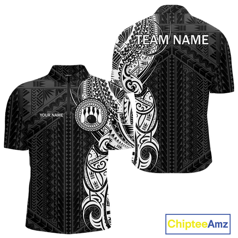 Black and White Tribal pattern Men Bowling Shirt Custom Bowling outfit men Team bowling league jersey NQS10648