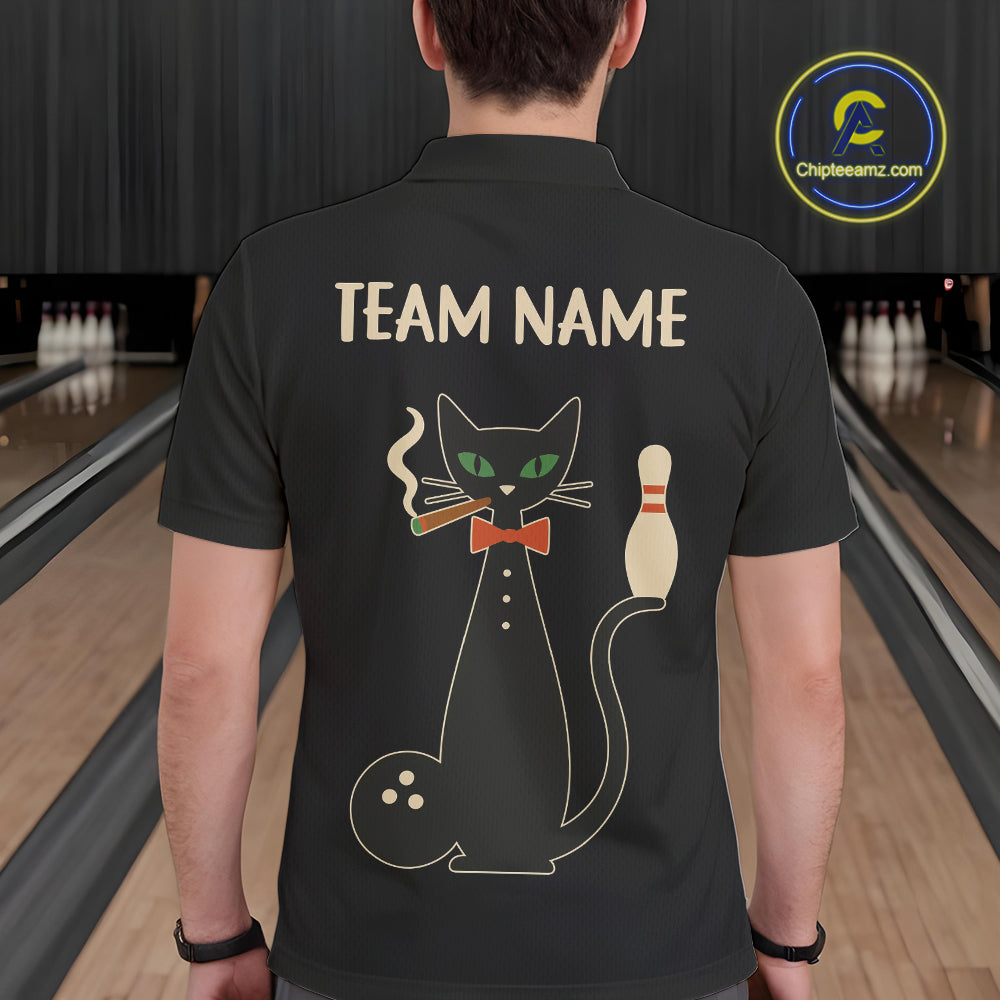 Custom retro bowling shirts Black and Orange Funny Cat Bowling jersey for men Team Bowling Outfit NQS11073