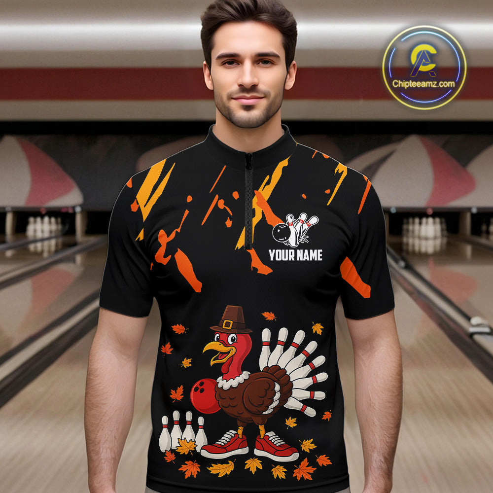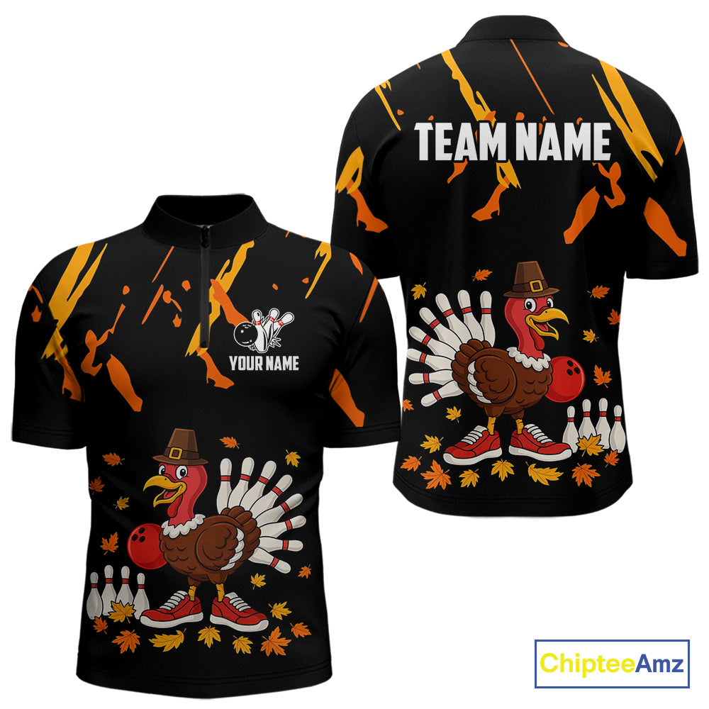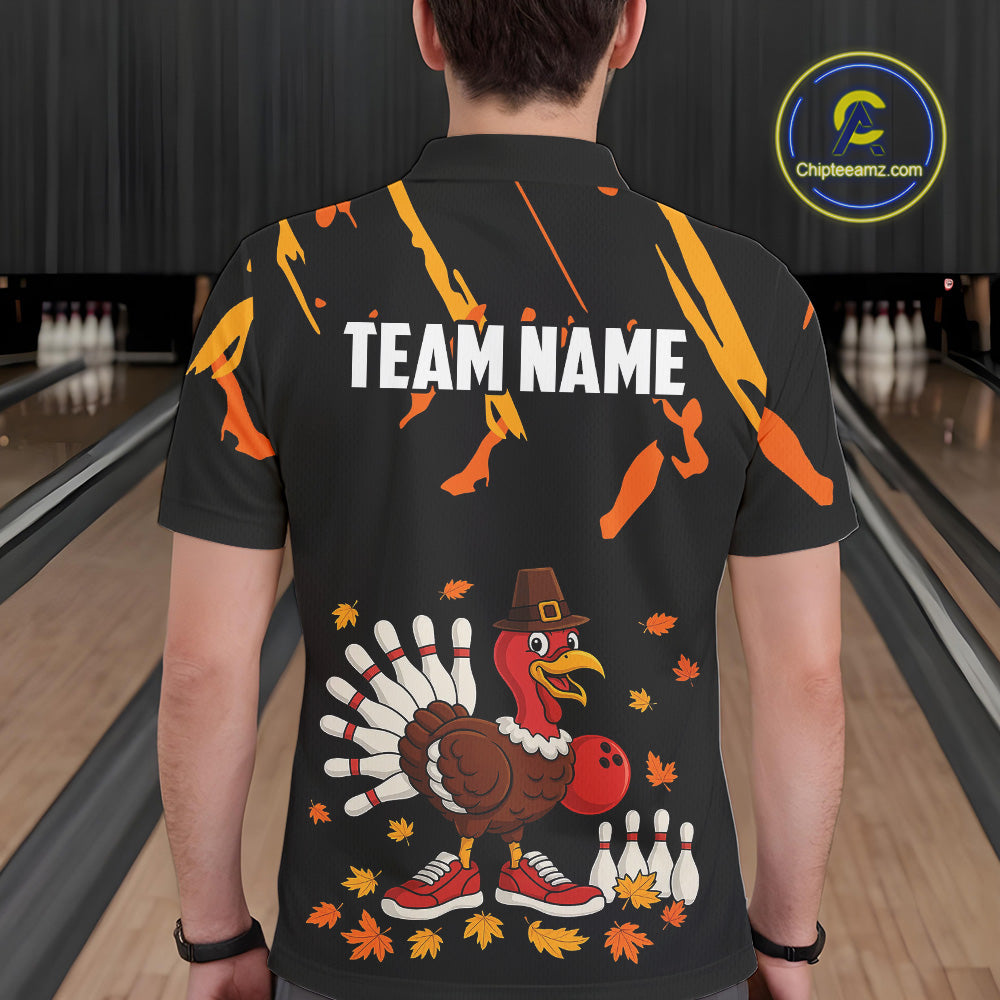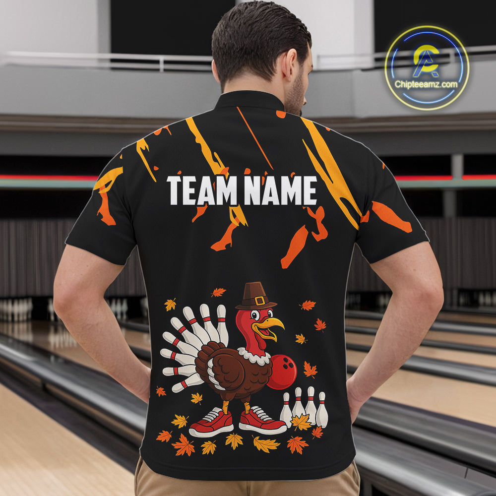 Custom Turkey Bowling Shirts For Men, Black and Orange Thanksgiving Autumn Team Bowling Jersey NQS10684
