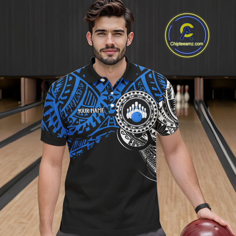 Personalized Black and Blue Tribal pattern Mens Bowling Shirts Custom Team Bowling outfit for men NQS10762