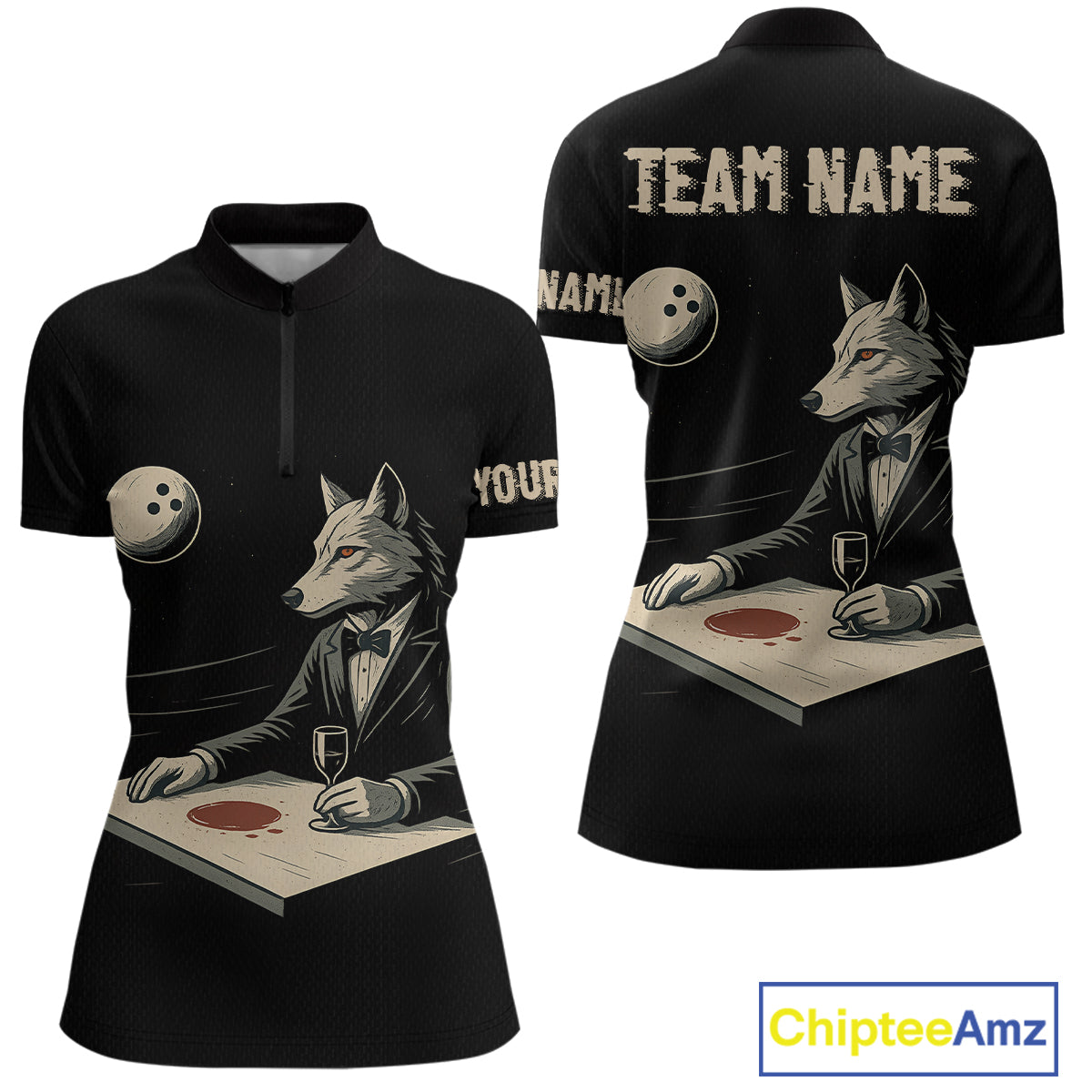 Personalized Black Wolf Bowling Jersey for Women Bowling Team Shirt Polo & 1/4-Zip Bowling Unisex QZT702
