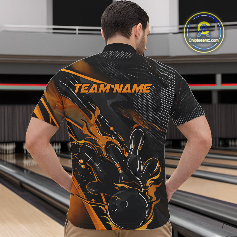 Custom Black And Yellow Flame Bowling Team Men Quarter-Zip Shirts, Fire Bowling Jerseys IPHW9781