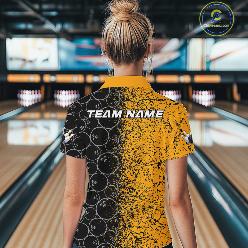 Custom Black And Yellow Bowling Ball Pattern Bowling Team Women Quarter-Zip Shirts IPHW9788