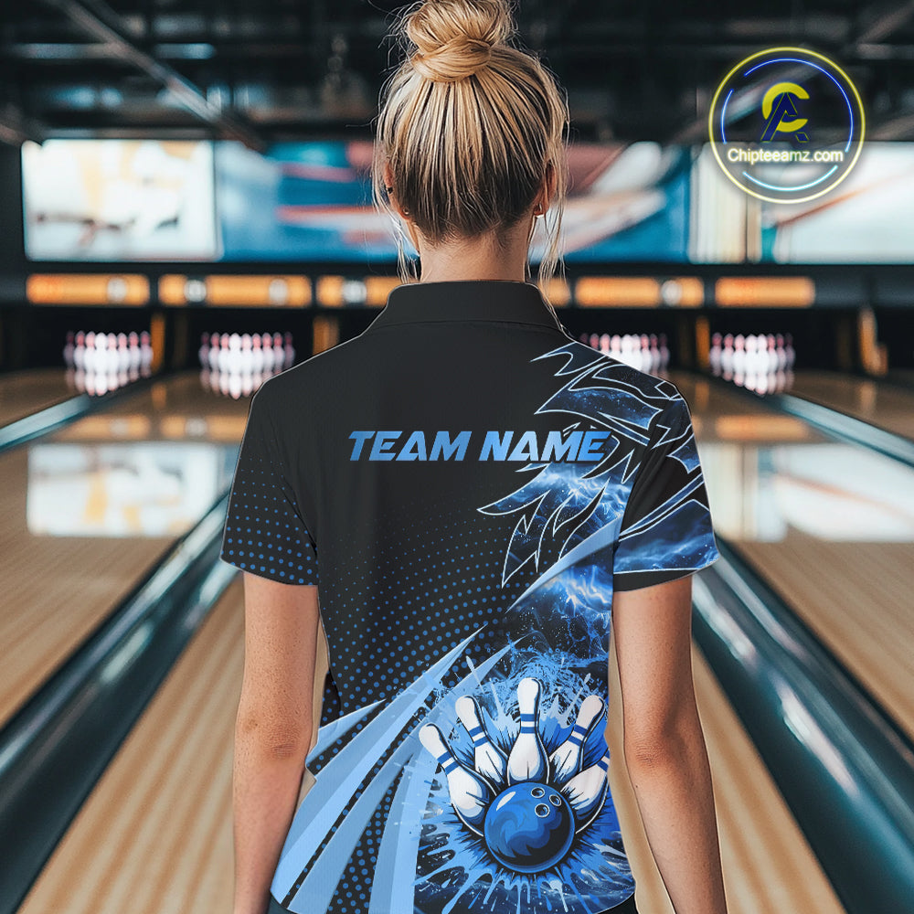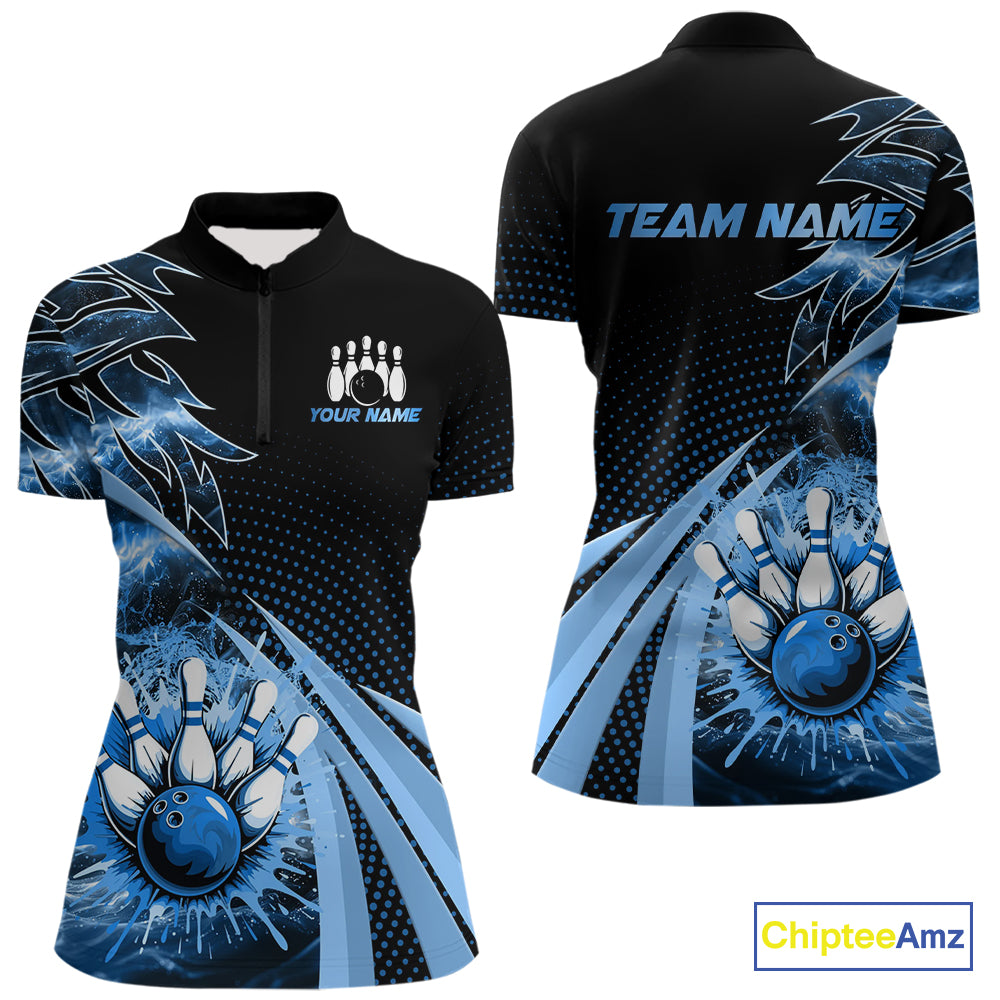 Black and Blue Bowling Polo, 1/4 zip shirts For Women Custom Team Bowling Jerseys, Gift For Bowlers NQS10786