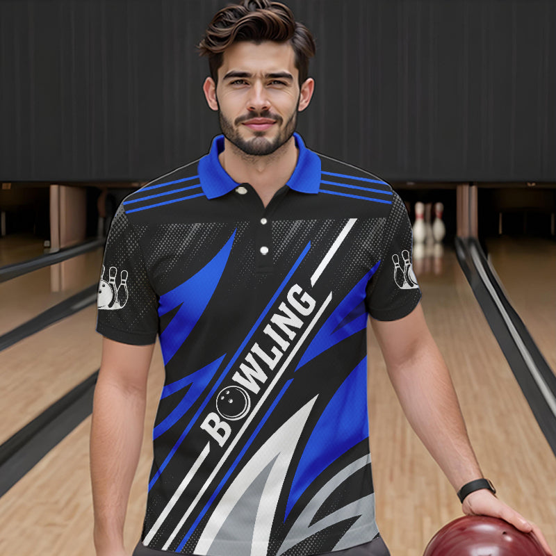 Black and Blue Bowling Polo, Quarter Zip Shirt for Men Custom Team bowling jerseys, Gift for bowlers NQS9322