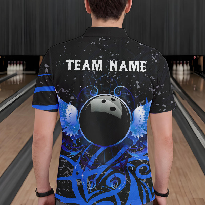 Black and Blue Camo Bowling Polo, Quarter Zip Shirts For Men Custom Team Bowling Jersey bowlers outfit NQS9417