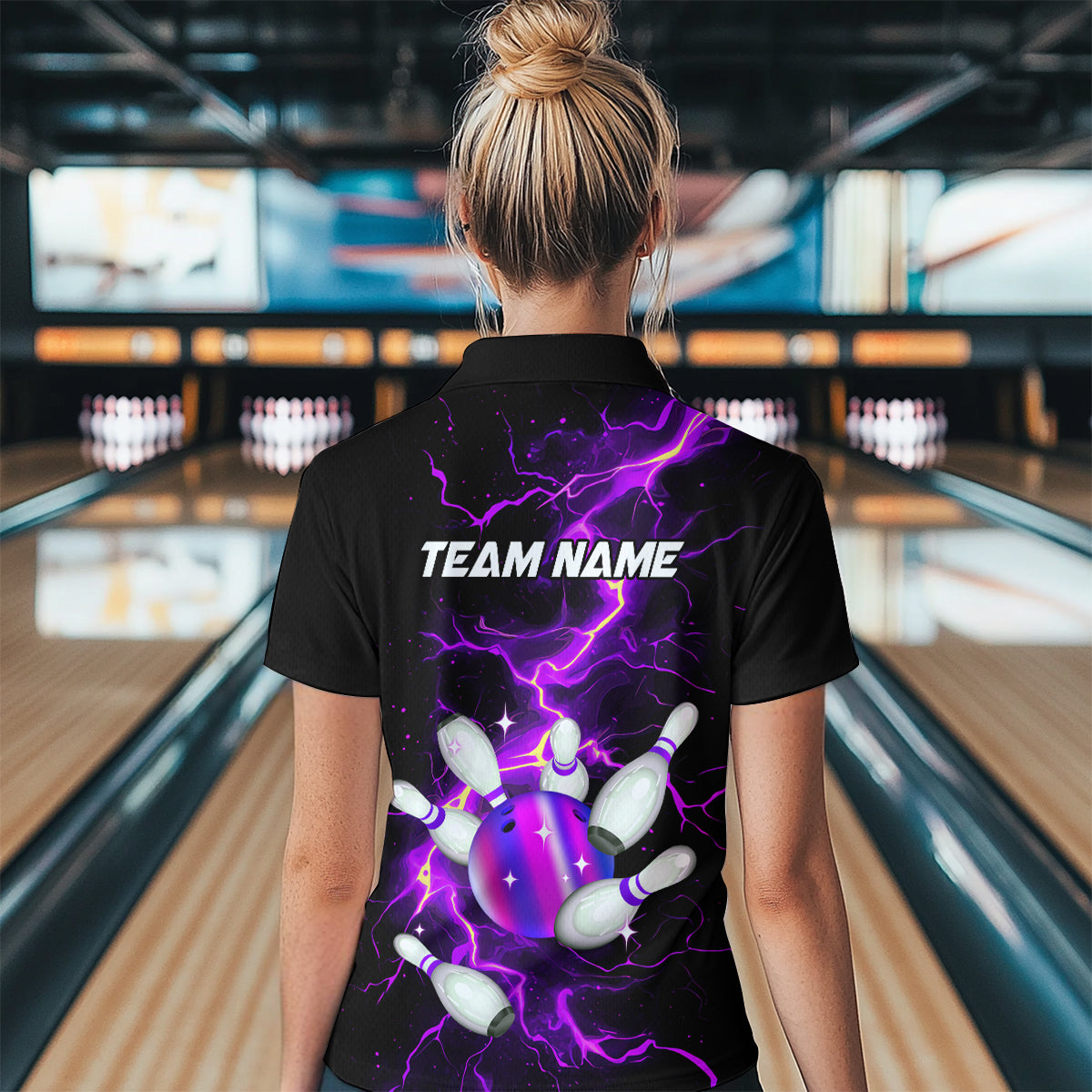 Black and Purple Lightning Bowling Shirts For Women Custom Bowling Team Uniform Bowlers Outfits NQS9597