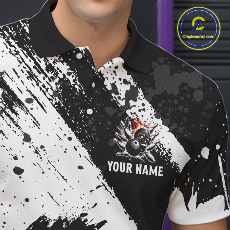 Black and White camo Flame Skull Bowling Shirts For Men Custom Bowling Team Jersey bowlers outfit NQS9795