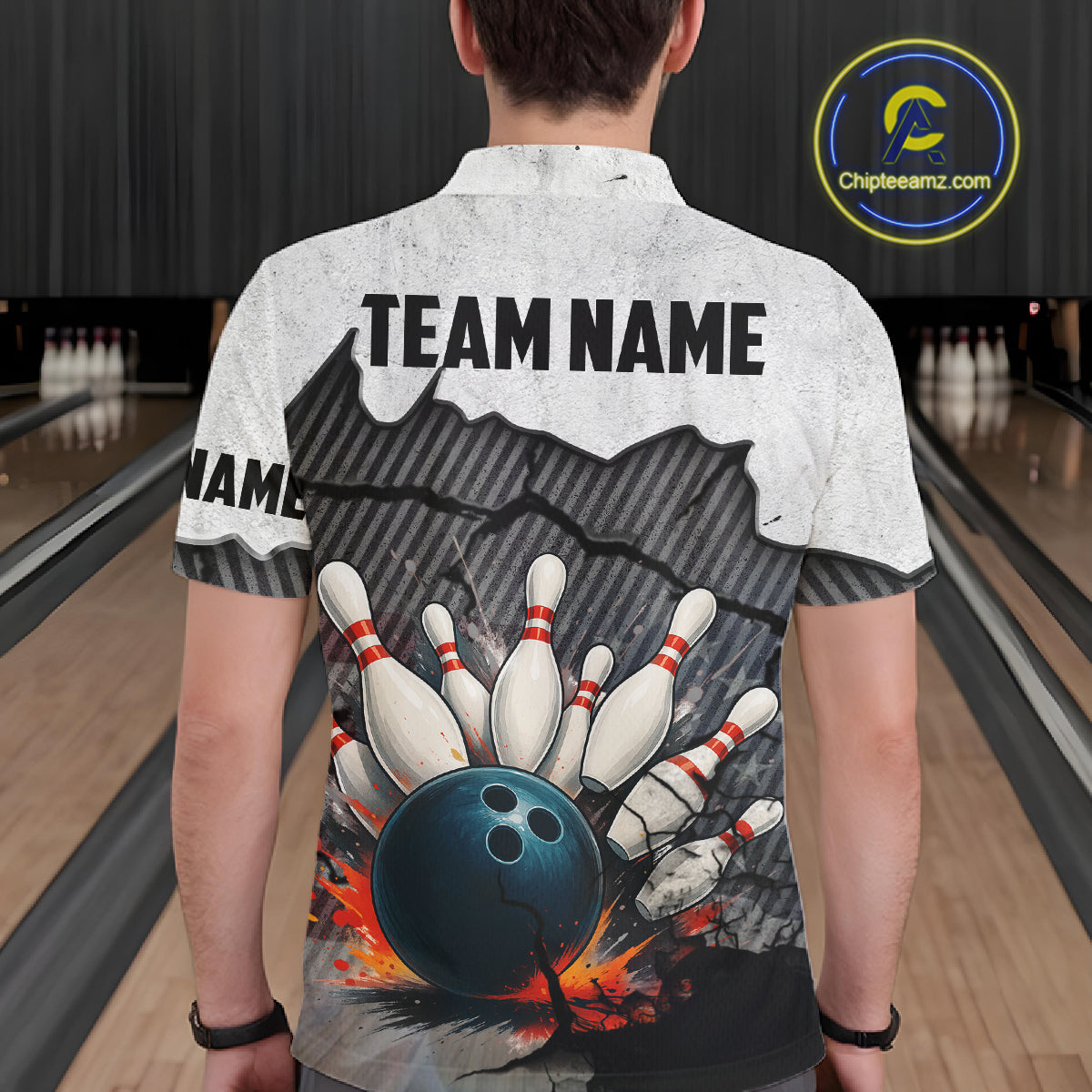 Black and White grunge Bowling Shirts for Men Custom Team Bowling Jerseys, Gift for Bowlers NQS10751