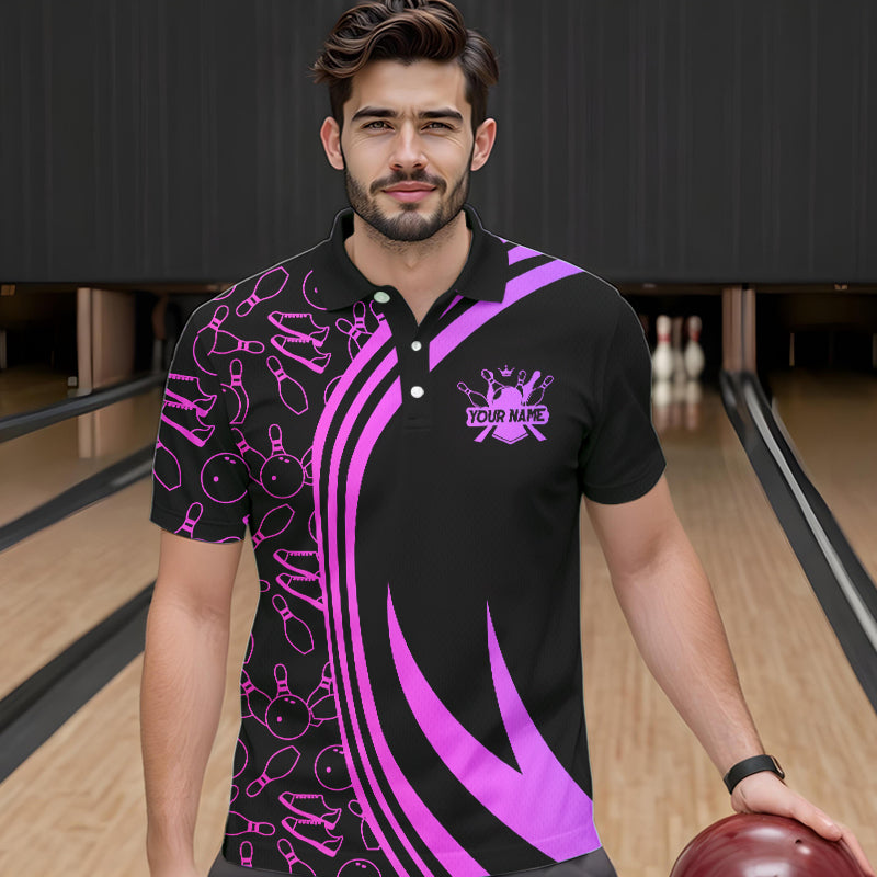 Black Mens bowling shirts Custom Pink neon team league bowling jerseys, gifts for bowlers NQS9668