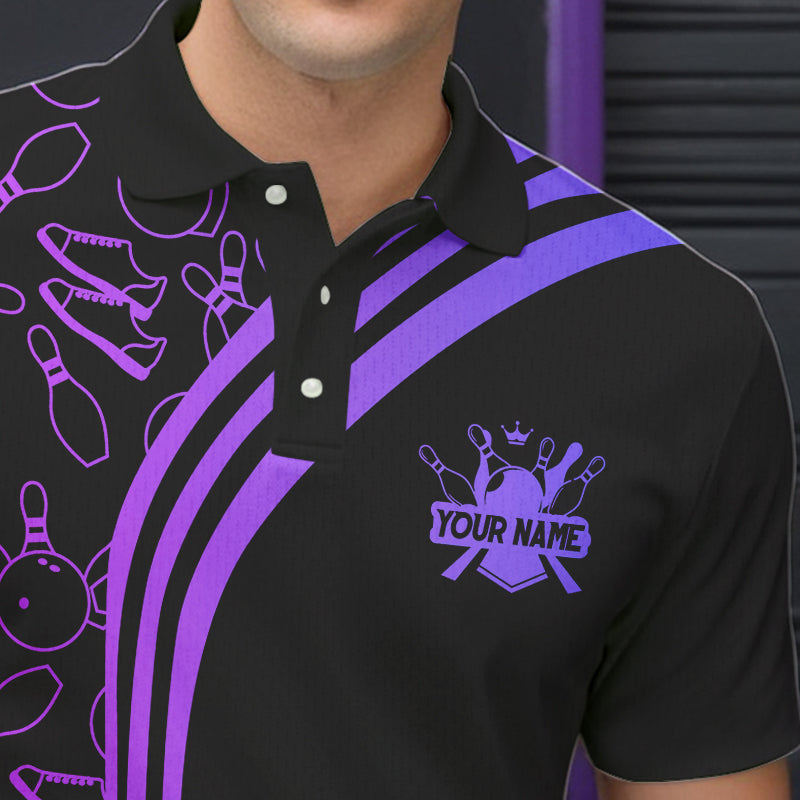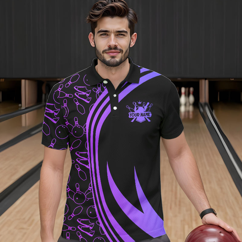Black Mens bowling shirts Custom Purple neon team league bowling jerseys, gifts for bowlers NQS9667