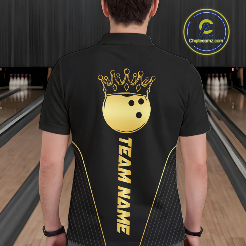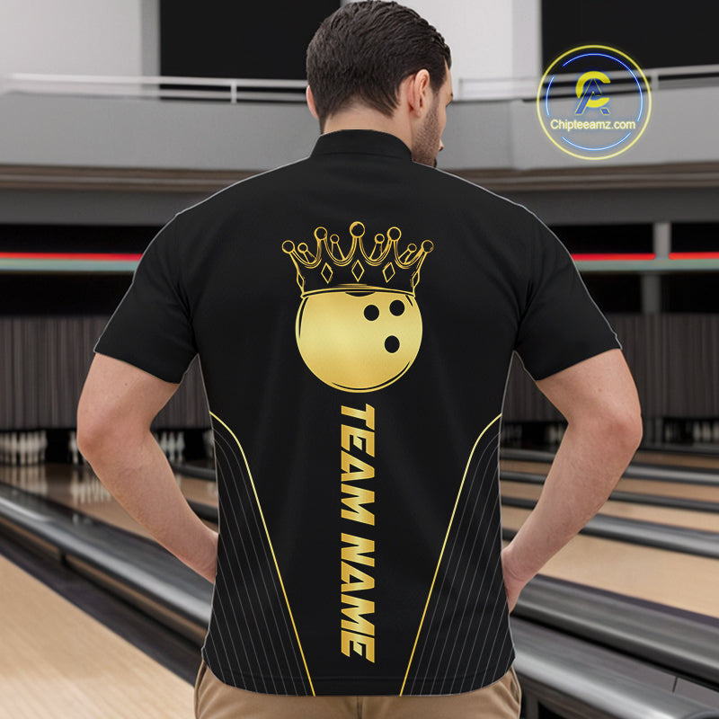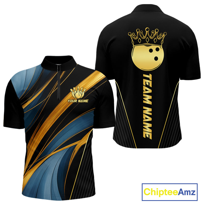 Blue and Gold Bowling ball Polo, Quarter Zip Shirts for Men Custom Bowling Outfit Team bowlers jersey NQS10032