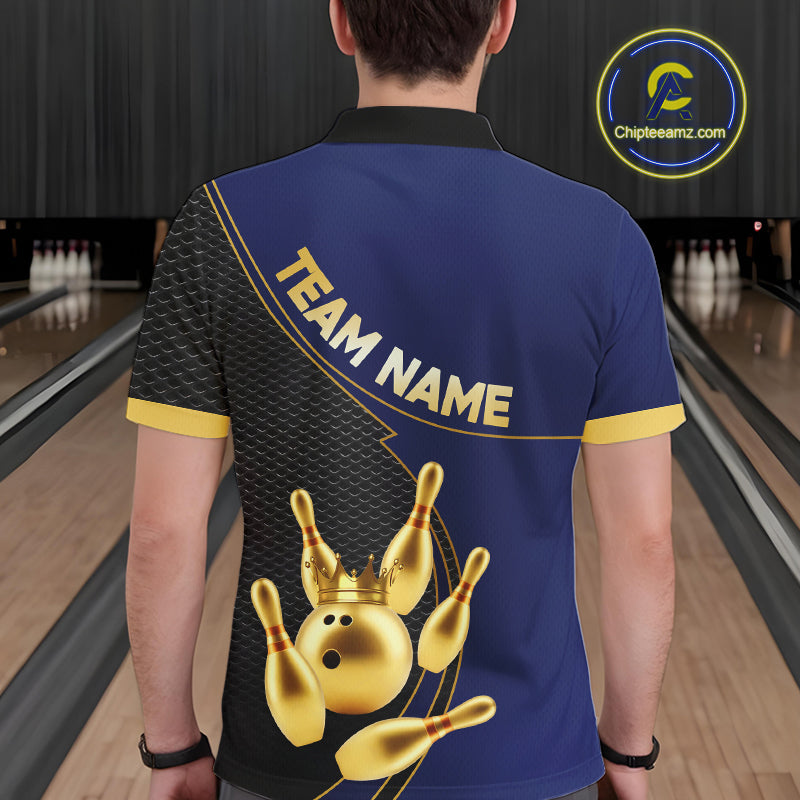 Blue and Gold Bowling shirts for men Custom Team Bowling Polo, 1/4 zip Shirt bowlers Outfit NQS10986