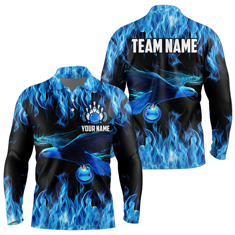 Blue Flame Eagle Custom Bowling Team Shirts For Men, Fire Bowling League Jersey Outfit For Bowler NQS9440