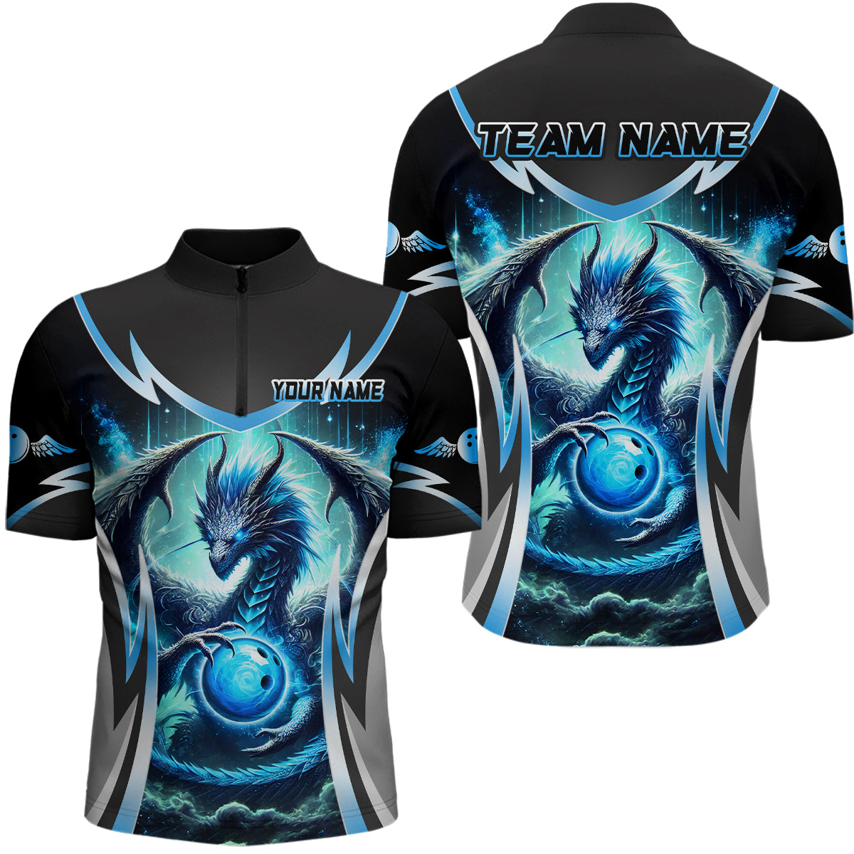 Blue Lightning Dragon Bowling shirts for Men Custom team bowling jerseys, gifts for bowler NQS9272