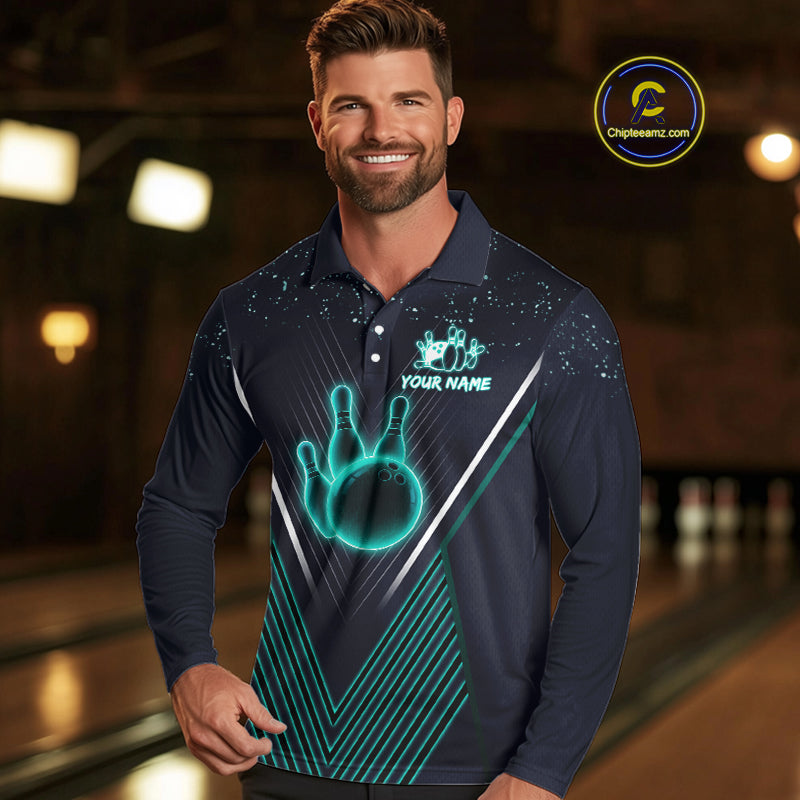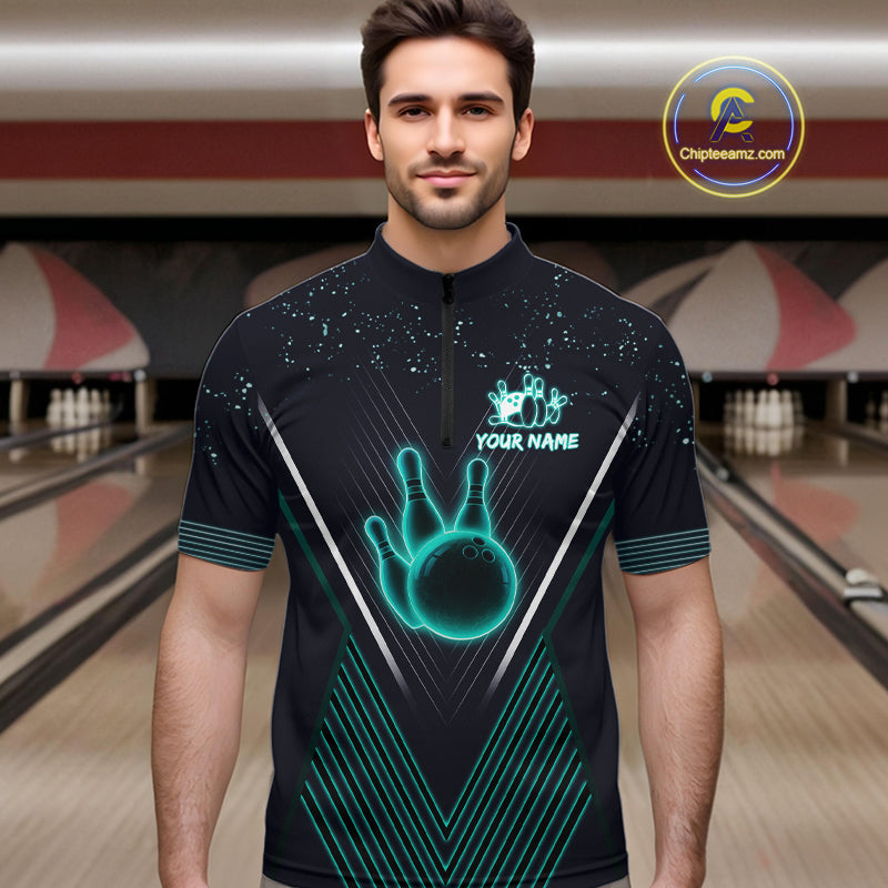 Bowling polo, quarter zip shirt for Men custom team bowling jersey, gift for bowlers | Turquoise NQS10256