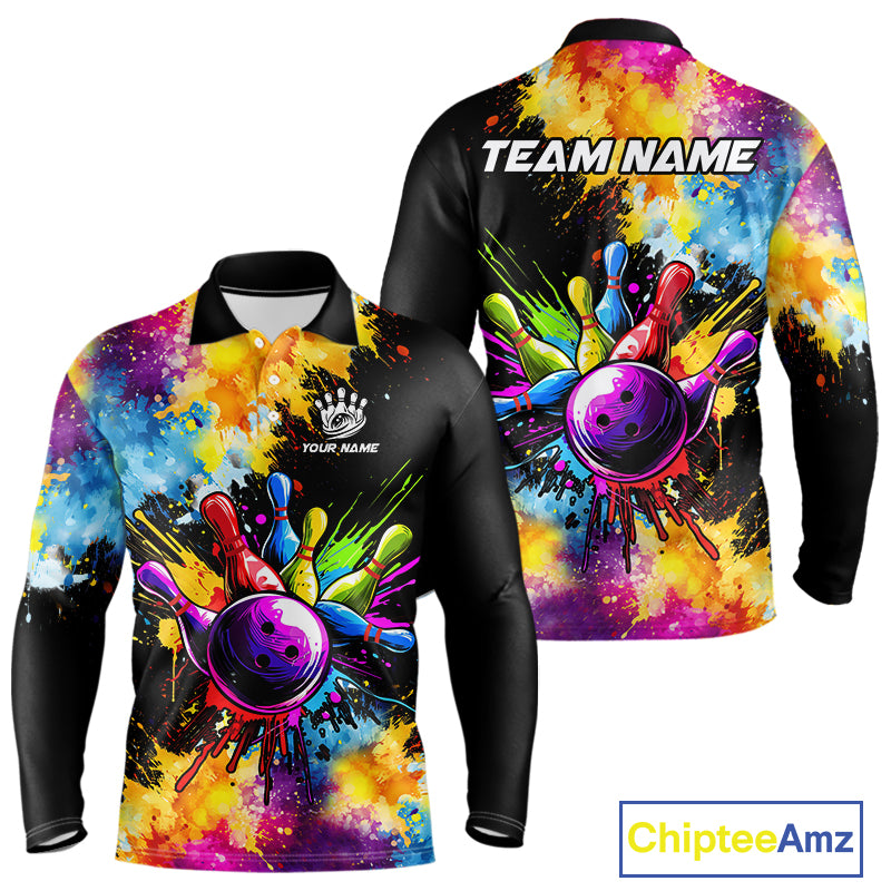 Colorful bowling jerseys Mens Bowling Polo, 1/4 Zip Shirt Custom Bowling Team shirts for bowlers NQS10241