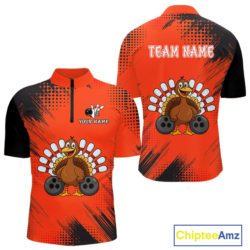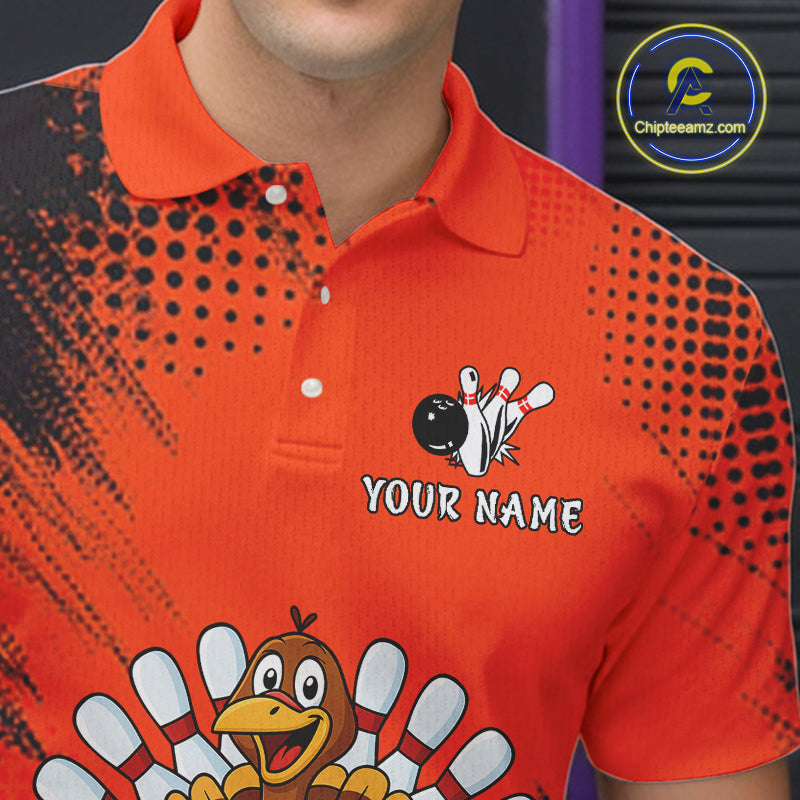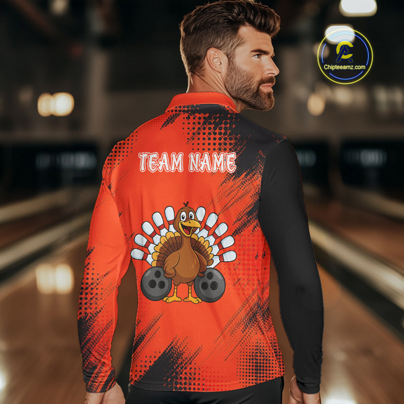 Custom Orange Turkey Bowling Shirt For Men, Thanksgiving Bowling Team Jersey Bowler Outfit NQS10369