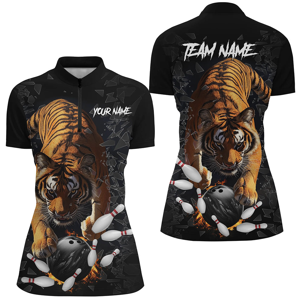 Custom Tiger broken glass Bowling Shirts For Women, Tiger Bowling Team Shirt Bowler Uniform Outfits NQS9147