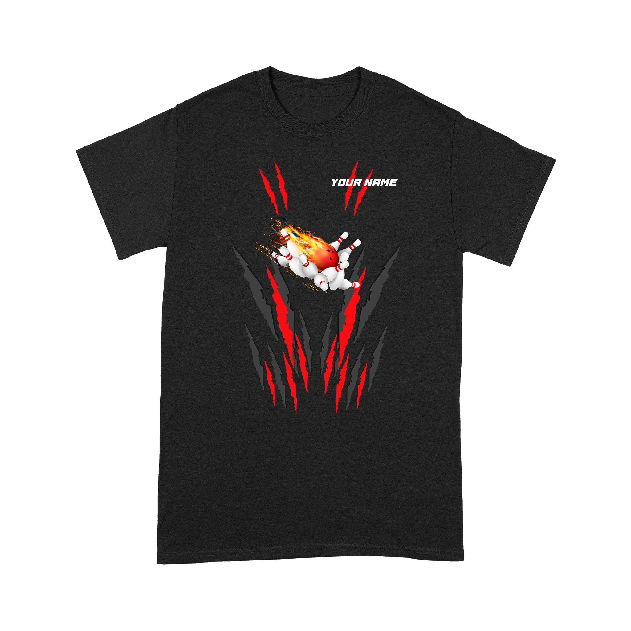 Flame Bowling Custom Name and Team Name Bowling T-Shirt, Gift For Bowlers D02 NQS9900