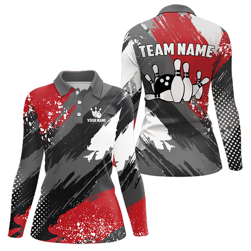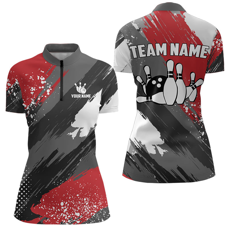 Grunge pattern Bowling Team Polo, 1/4 Zip Shirt For Women Custom Bowling jersey Uniform Bowler Outfits NQS9370