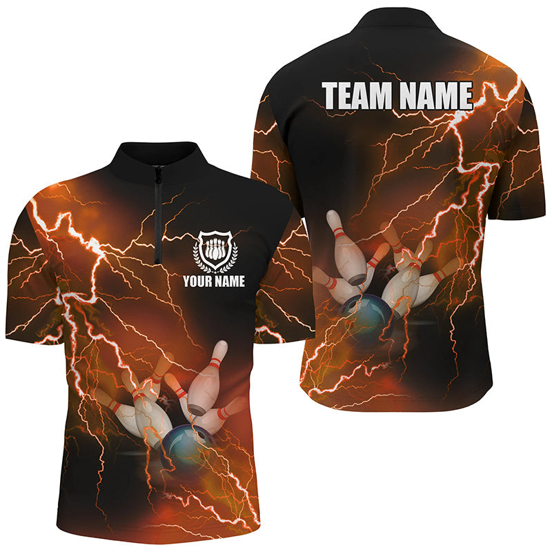 Mens bowling shirts Custom orange lightning thunder Bowling Team Jersey, gift for team Bowlers NQS8317