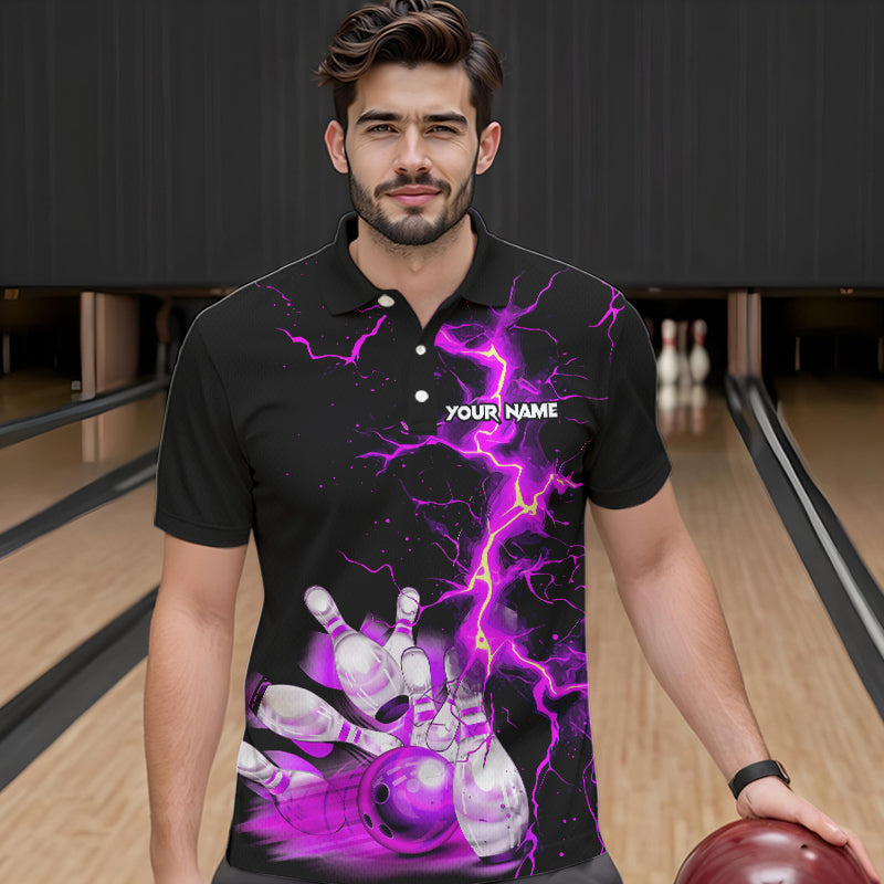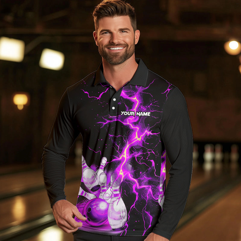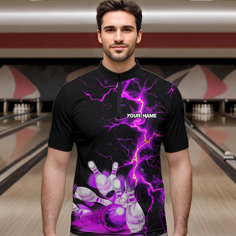 Mens bowling shirts Custom purple lightning thunder Bowling Team Jersey, gift for team Bowlers NQS9493
