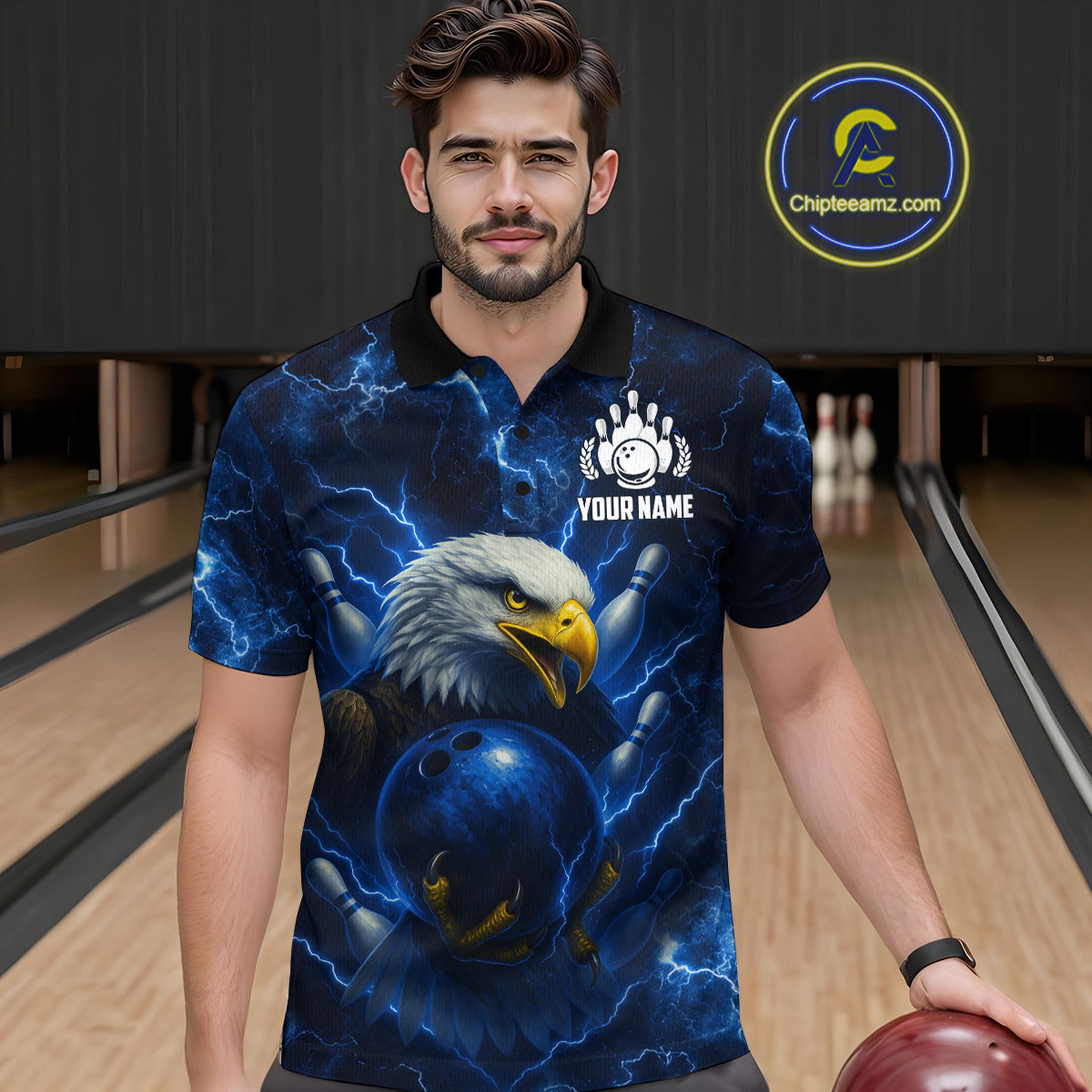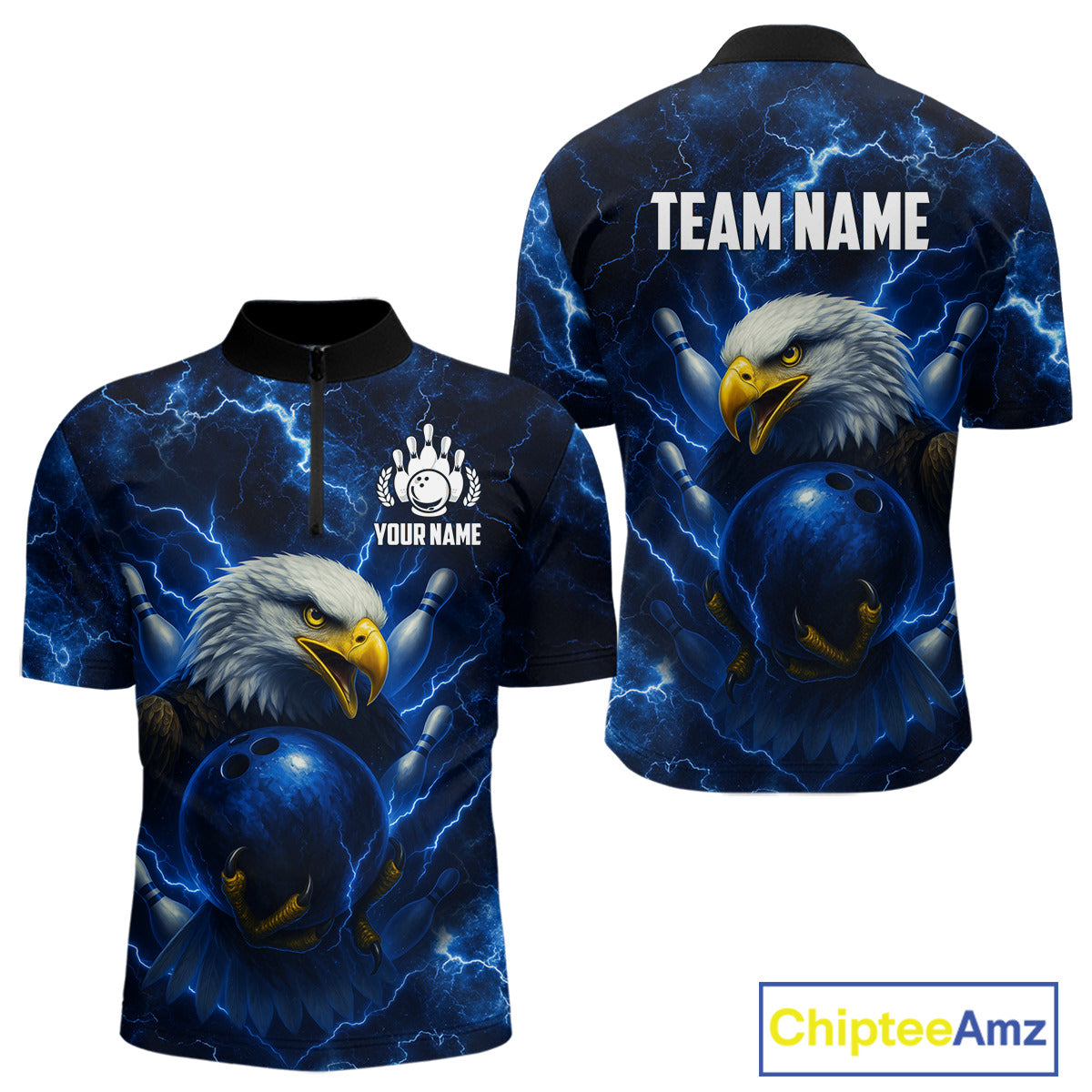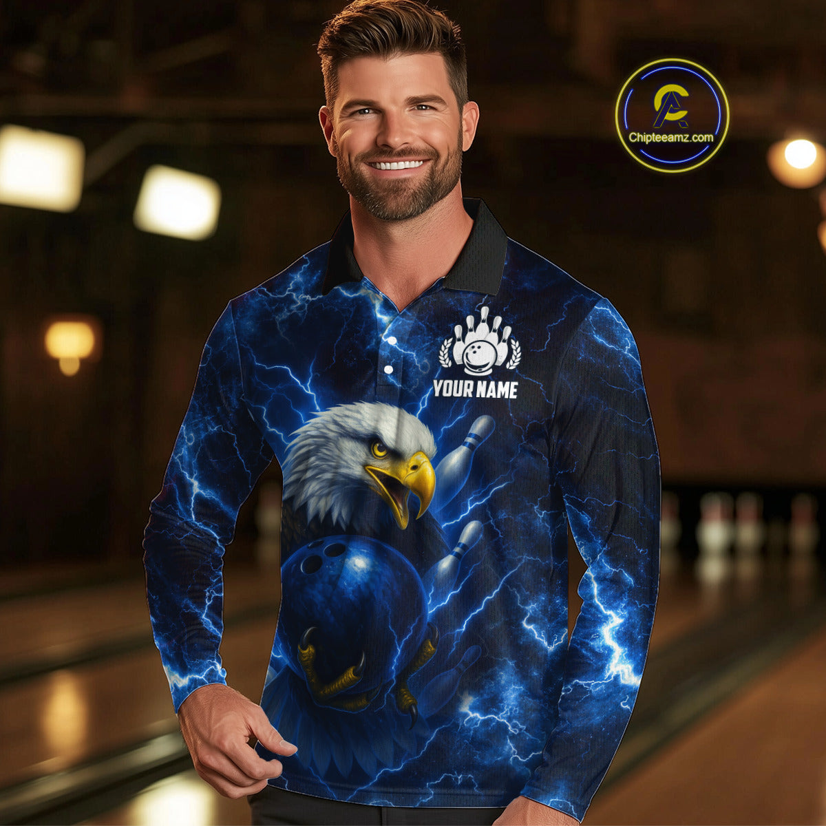 Mens bowling shirts Custom Eagle blue lightning thunder Bowling Team Jersey, gift for Bowlers NQS10336