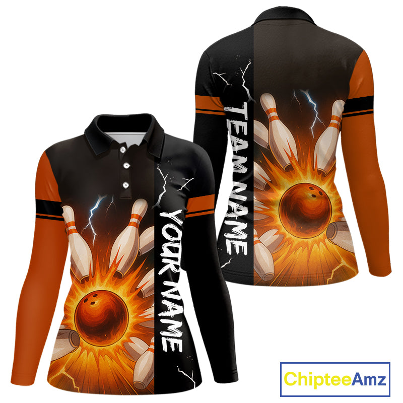 Orange Flame Lightning thunder Bowling shirt For Women custom bowling team jersey Bowler Outfits NQS10329