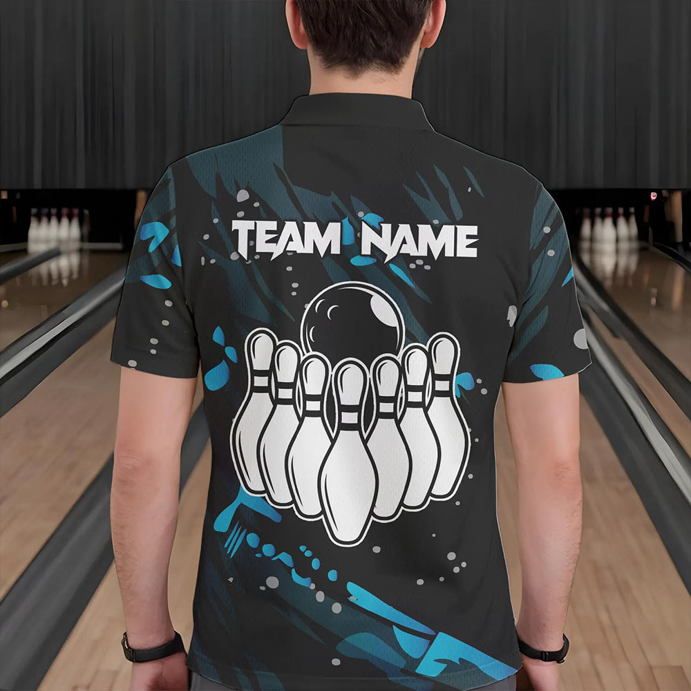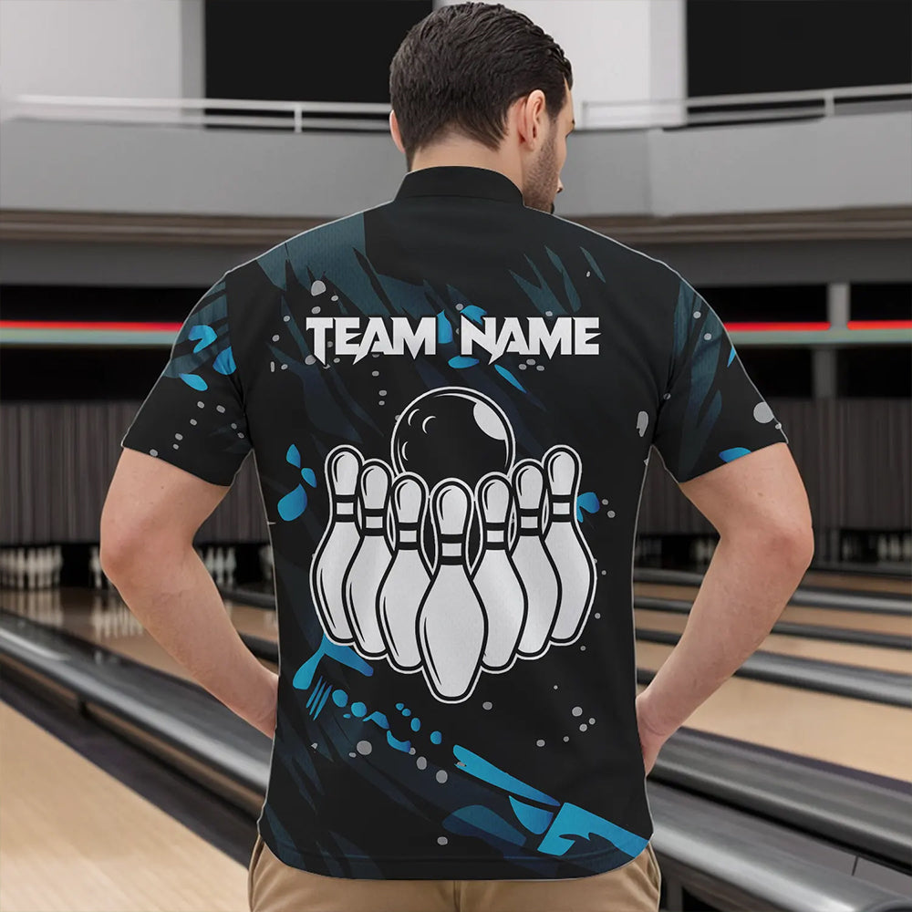 Personalized Blue Camo Bowling Team Shirts For Men Custom Bowling Team jerseys, Gifts For Bowler NQS9718