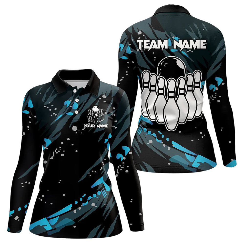 Personalized Blue Camo Bowling Team Shirts For Women Custom Bowling Team jerseys, Gifts For Bowler NQS9718
