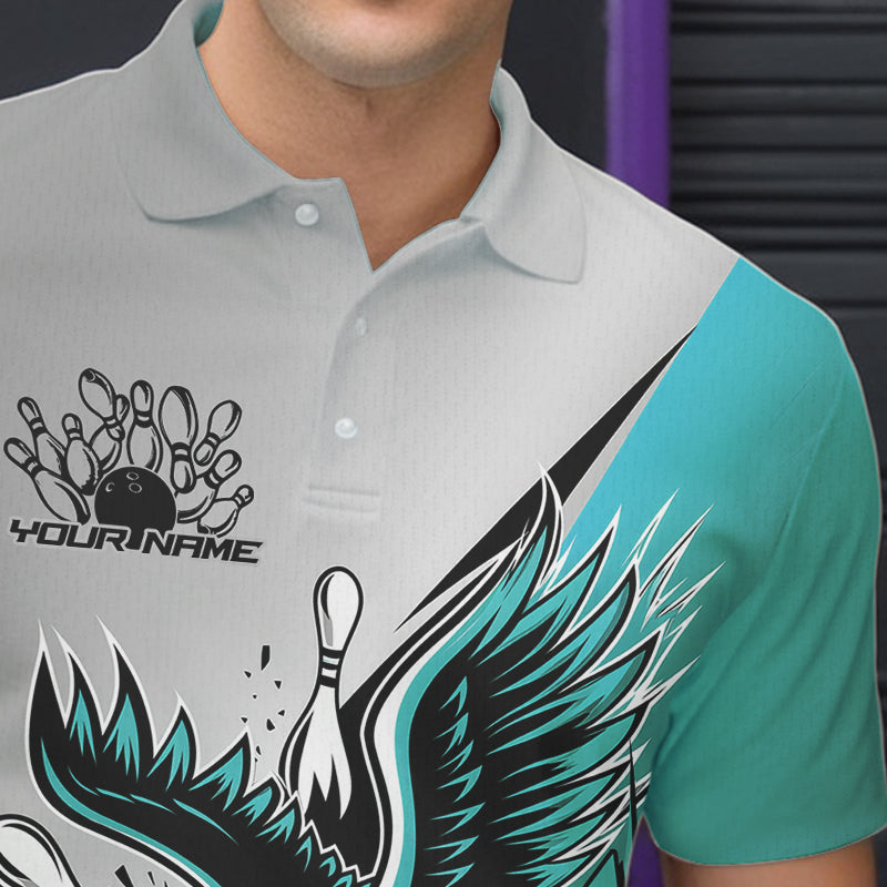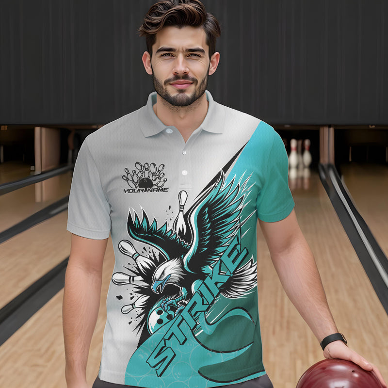 Custom Blue Eagle Bowling Team Men Polo Shirts, Eagle Bowling League Shirt Bowlers Outfit IPHW8755