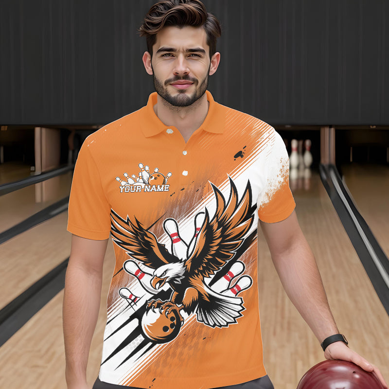 Custom Orange Eagle Bowling Jerseys, Eagle Bowling Men Polo Shirts Team Uniform Bowlers Outfit IPHW8787