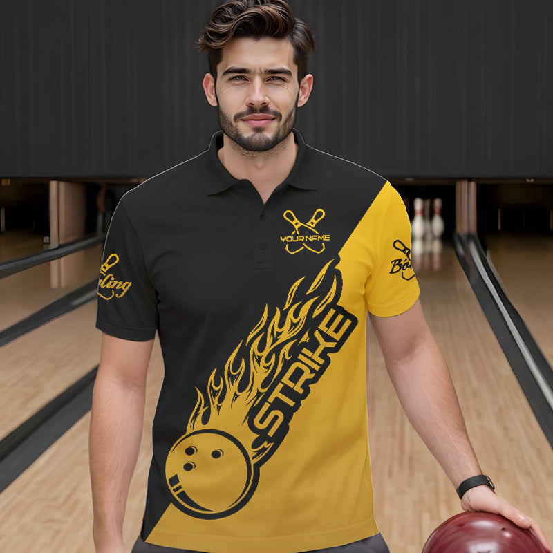 Black And Golden Custom Strike Bowling Polo Shirts For Men, Bowling Team Shirt Bowler Outfit IPHW8825