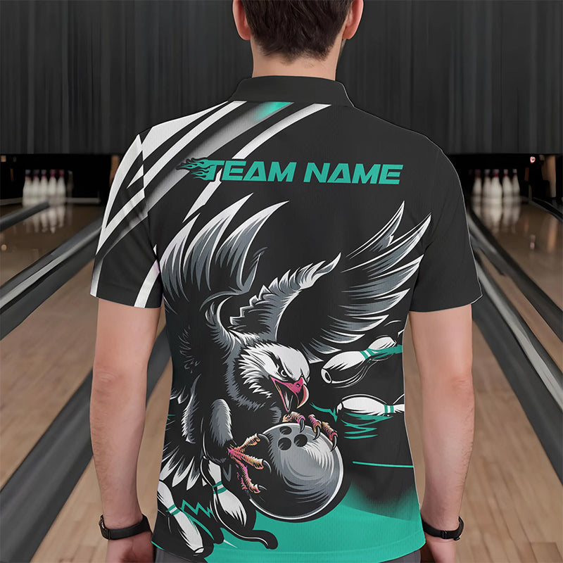 Custom Black And Blue Eagle Bowling Jerseys, Bowling Team Men Polo Shirts Bowlers Outfits IPHW8887