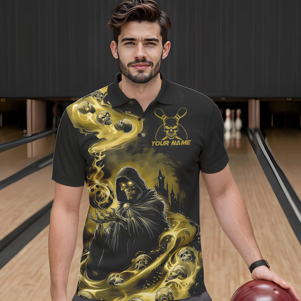 Black And Yellow Grim Reaper Custom Halloween Bowling Team Men Polo Shirts, Bowlers Outfit IPHW8894