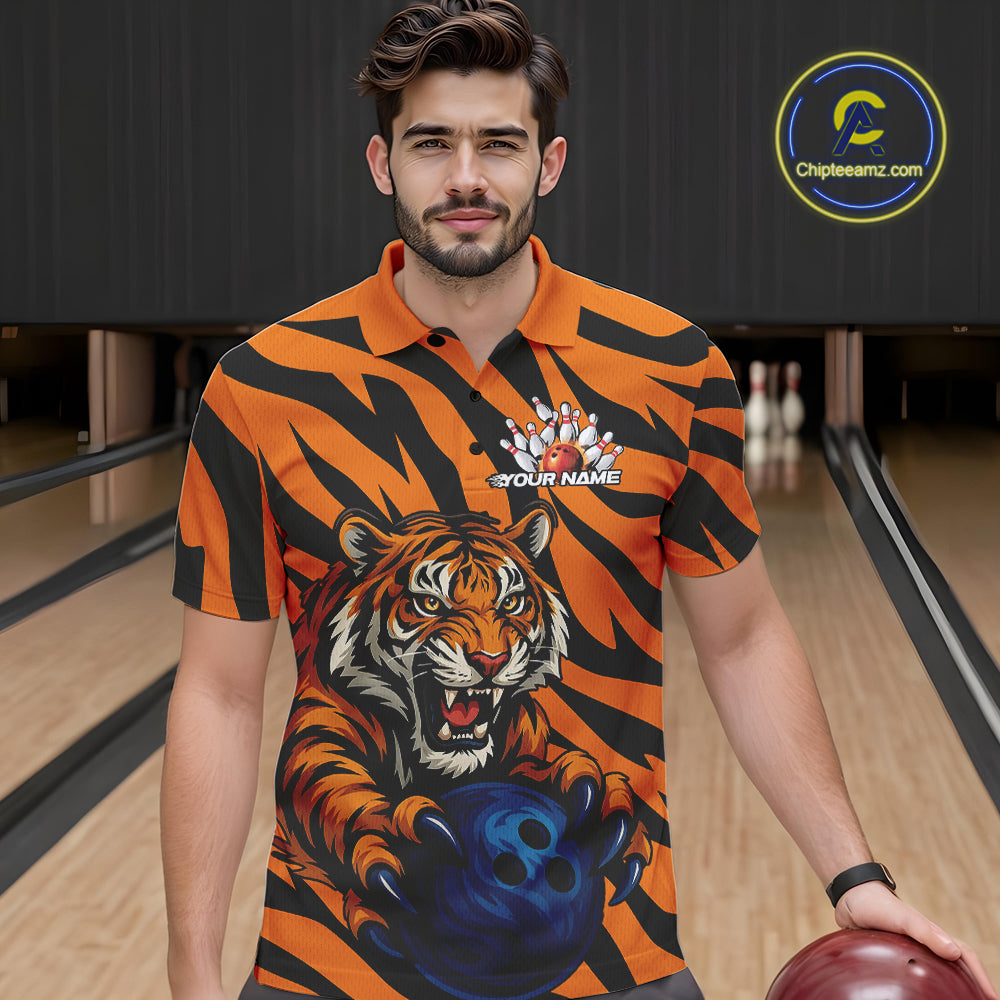 Custom Tiger Bowling Team Polo Shirts For Men, Tiger Bowling Team Uniform Bowler Outfit IPHW9025