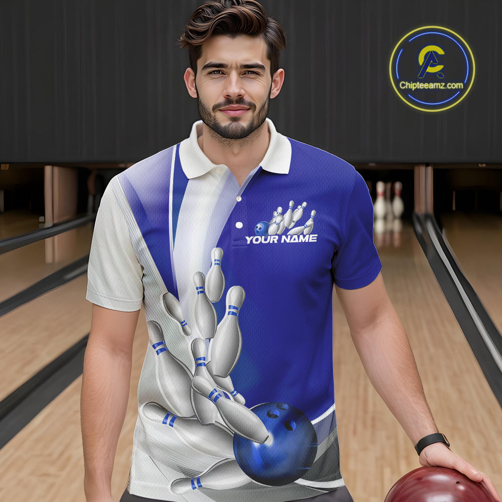 Custom Blue Bowling Polo Shirts For Men, Bowling Team Shirt Bowlers Outfit IPHW9232