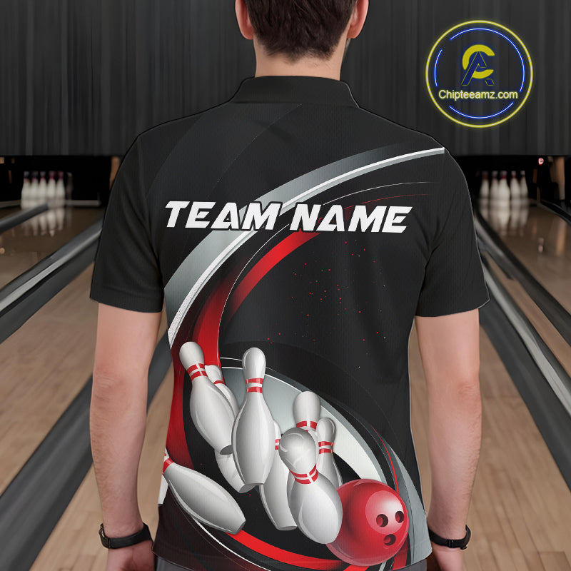 Custom Black And Red Bowling Team Jerseys, Bowler Uniform Bowling Polo Shirts For Men IPHW9276