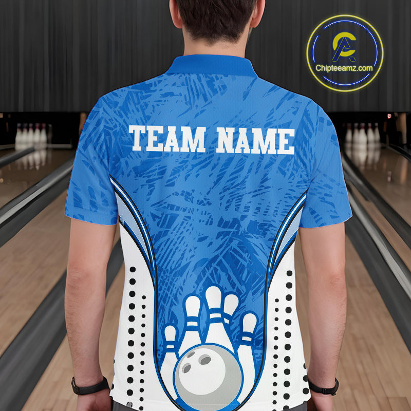Custom Blue Camo Bowling Team Polo Shirts For Men, Bowling Jerseys Bowler Outfit IPHW9598