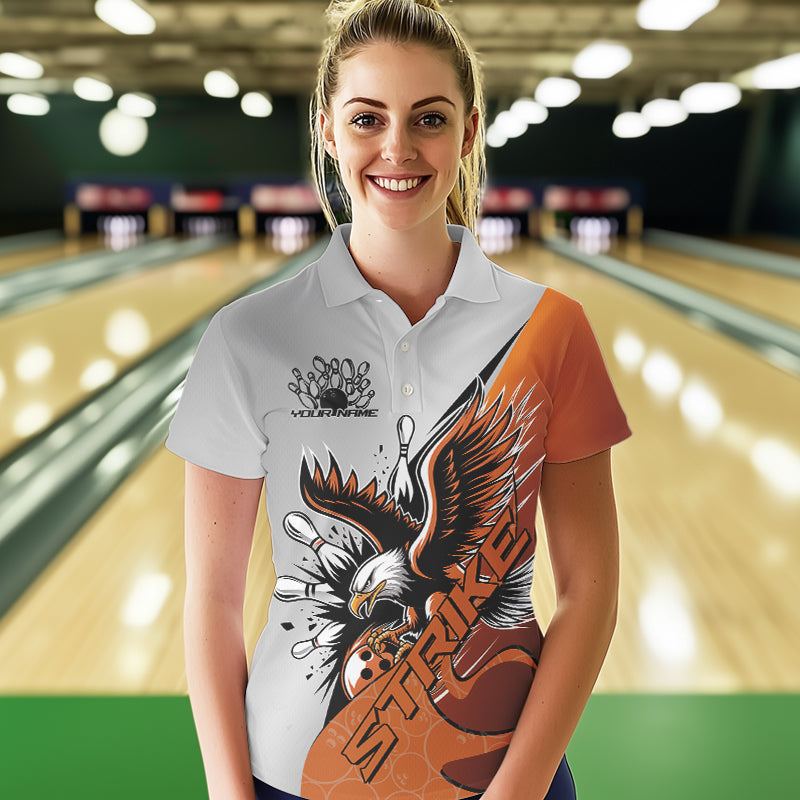 Custom Orange Eagle Bowling Team Women Polo Shirts, Bowling League Shirt Bowlers Outfit IPHW8754