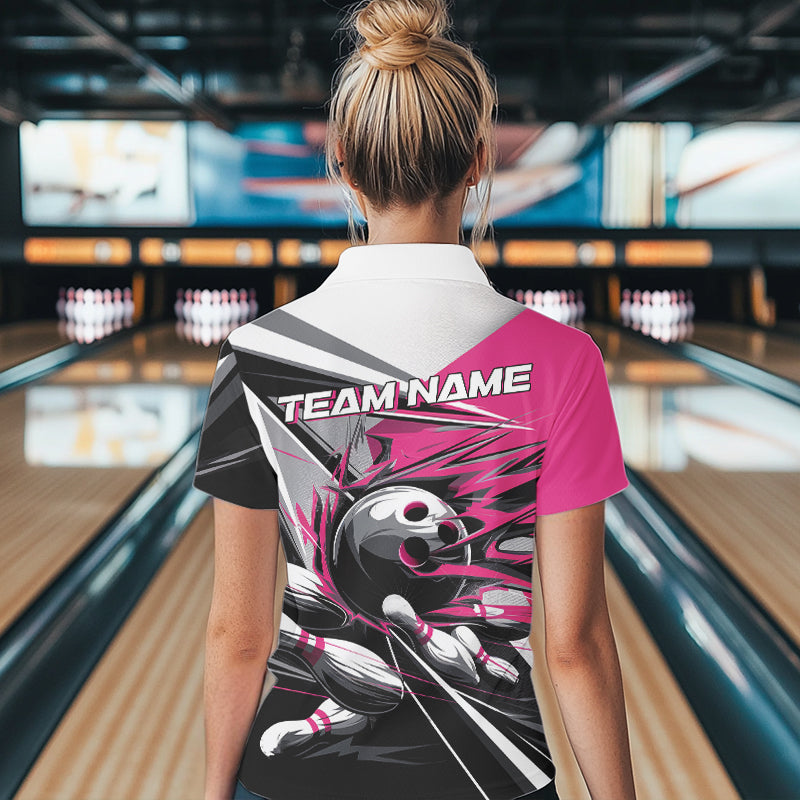 Custom Black And Pink Striking Bowling Polo Shirts For Women, Team Uniform Bowlers Outfits IPHW8764